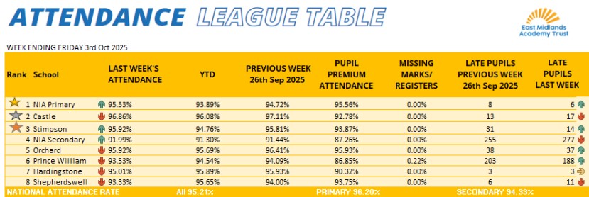 We have worked hard to improve attendance and punctuality and our attendance figures continue to be positive for this academic year.
