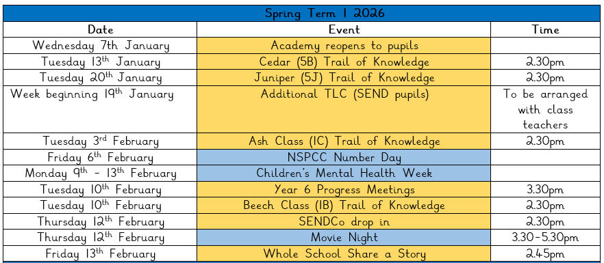 Events & School Calendar